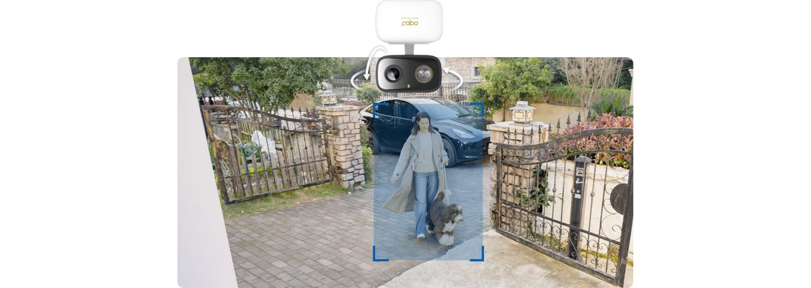 Motion triggers automatic tracking, keeping people and pets within the camera's view even as they move.