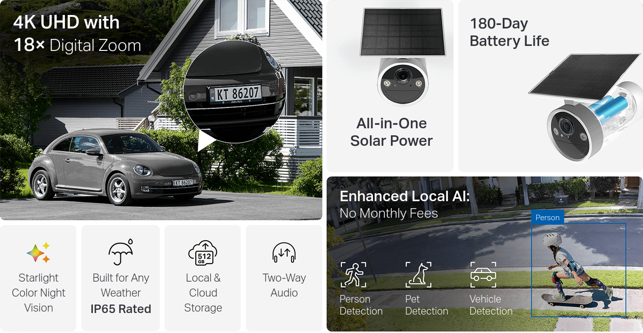 - Local & Cloud Storage: Select local on-device storage via microSD card (up to 512GB, sold separately) or opt for cloud storage with Tapo Care.