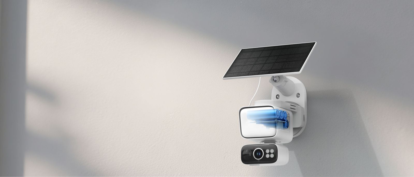 - Smart Lighting with Customization: Adjust the angle and brightness of the floodlight to light up your monitoring area. Activate the floodlight with motion or just control it manually.