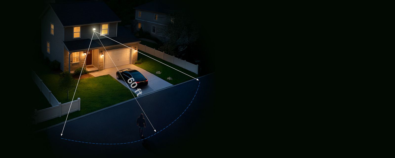 Detects movement up to 60 ft away. Longer range and smarter motion sensing means quicker alerts and no missed activity.
