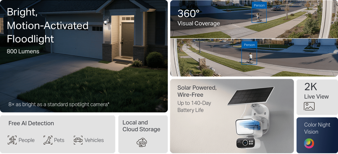- All-in-One Floodlight and Camera: Features an 800-Lumen floodlight that illuminates your property, keeping your space bright and your neighbors undisturbed.