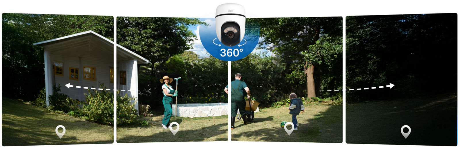 - 360° AI Tracking: The camera provides 360° coverage and accurately identifies and tracks people, pets, and vehicles.