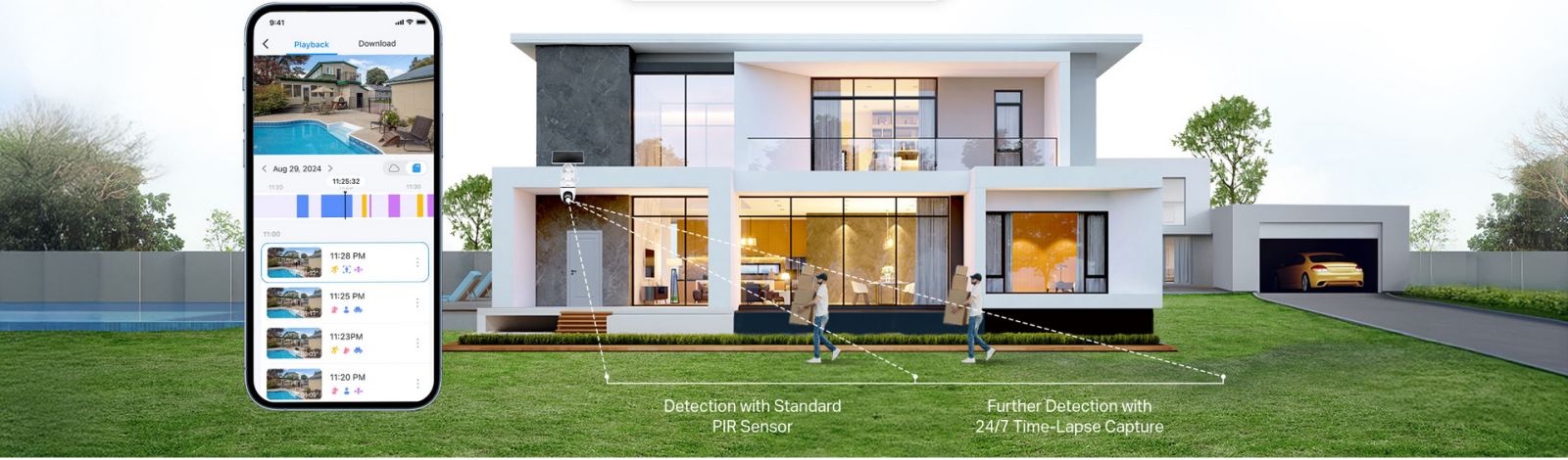 Breaking the boundaries of typical battery-powered cameras, the camera continuously captures images at regular intervals, detecting motion at the footage level so nothing in the frame goes unnoticed. The AI system monitors in real time and alerts you of detected motion while triggering video recording.