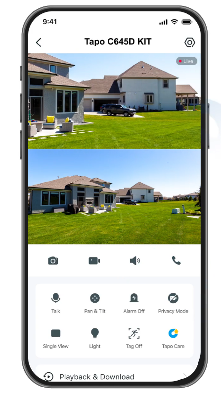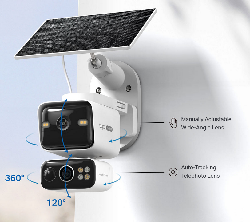The two cameras work in perfect sync—once the fixed lens spots motion, people or pets, the pan/tilt lens locks on to track the subject, while the wide-angle fixed lens keeps watch over the entire scene so nothing else goes unnoticed.