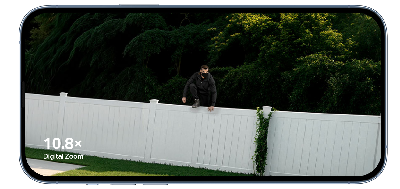 The 6mm telephoto lens captures 4.9× more detail than the wide-angle lens and allows digital zoom of up to 10.8×, letting you see distant subjects more clearly.