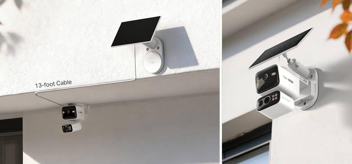 Place your camera where you need, not where the power outlet is. Install together or install separately to maximize the sun exposure.
