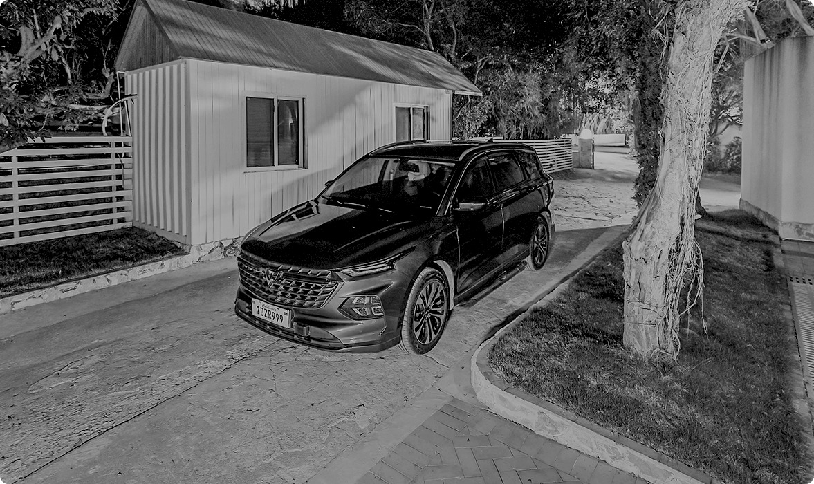 Even in complete darkness, an advanced IR algorithm delivers clear black-and-white footage.