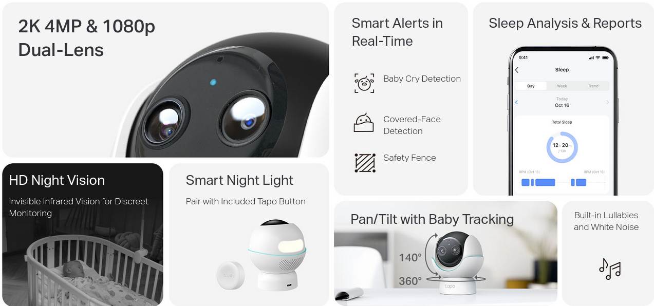 - Covered-Face Detection: The camera alerts you instantly if your little one's face becomes obstructed.
