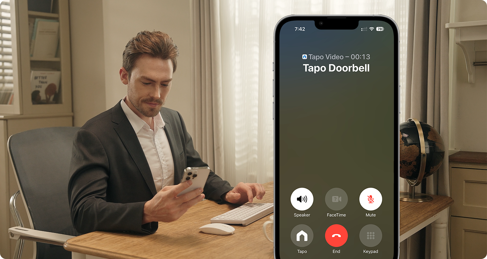 Get a doorbell call when some presses your doorbell and talk to them instantly - just like a regular phone call. No need to unlock the screen or open the Tapo App manually.