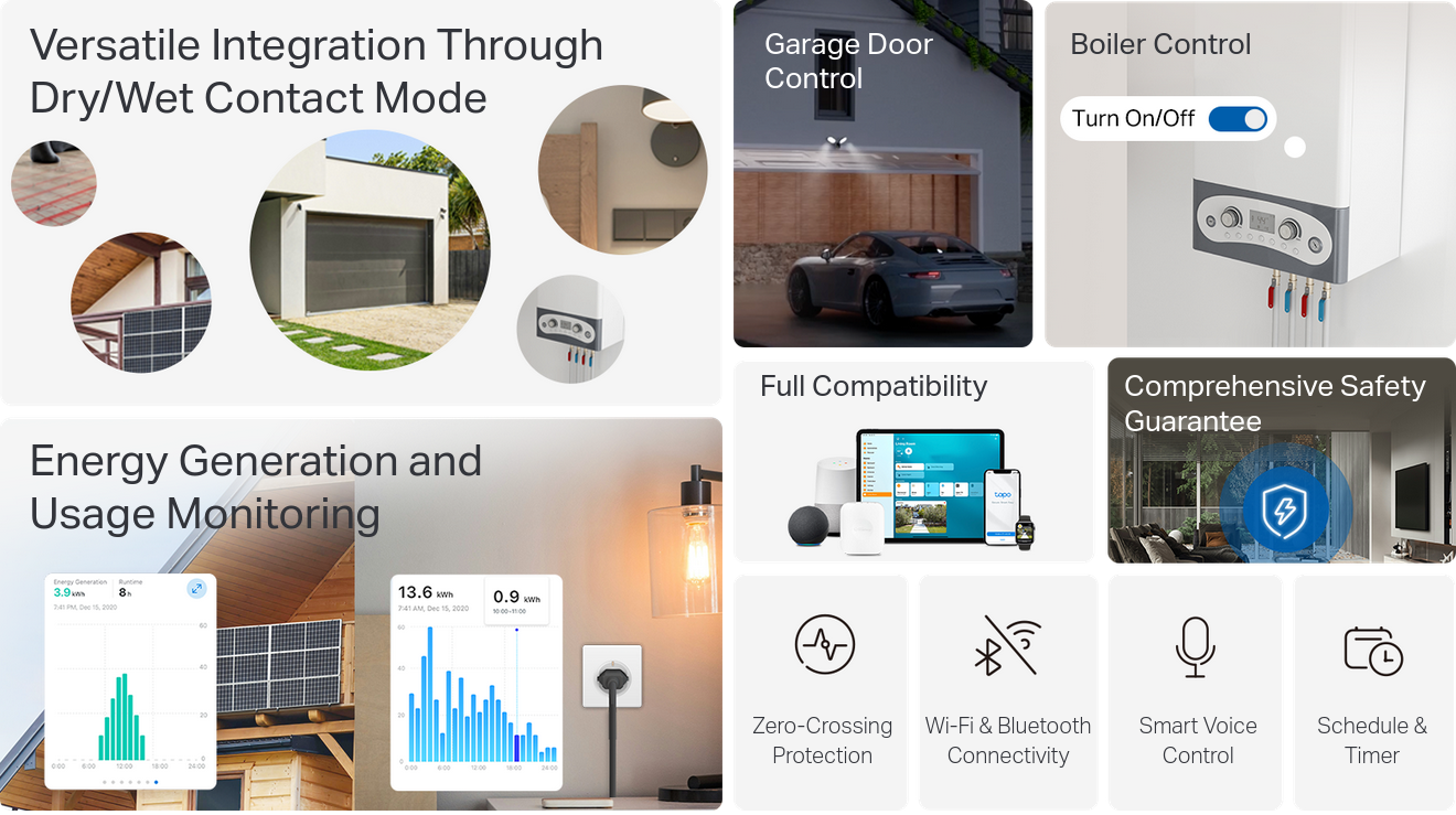 - Wet Contact Mode - Effortlessly control smart lights, outlets, and electric floor heating without replacing your existing equipment.