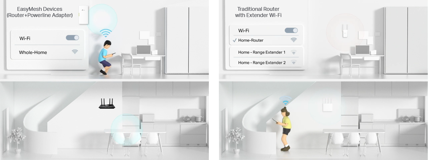 If you have any dead zones at home, just add another EasyMesh-compatible device to further form your whole home mesh WiFi. No more searching for a stable connection.