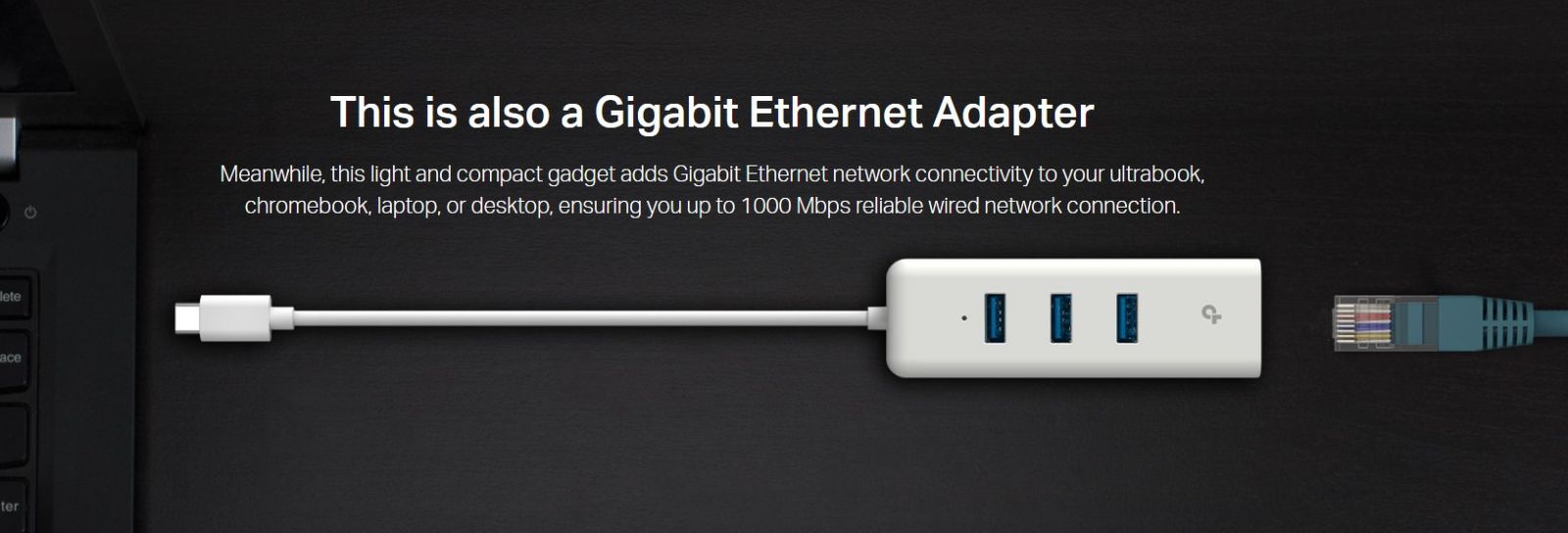 Междувременно, този лек и компактен уред добавя Gigabit Ethernet мрежова свързаност към вашия ултрабук, хромбук, лаптоп или настолен компютър, като ви осигурява надеждна кабелна връзка със скорост до 1000 Mbps.
