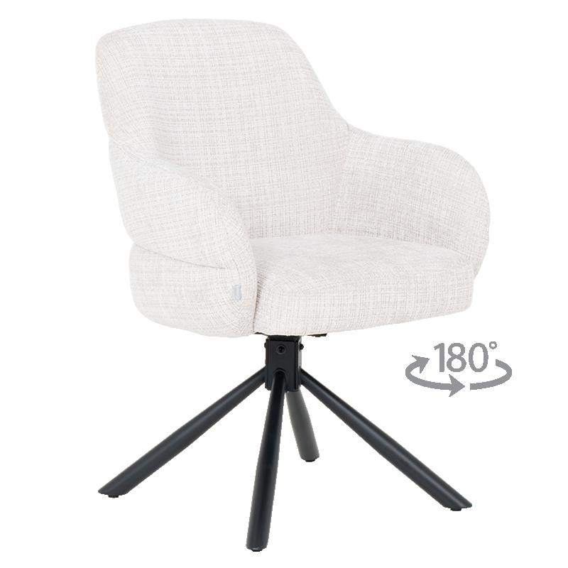 Трапезен стол BANGOR впечатлява с елегантна визия и изключителен комфорт, съчетавайки обгръщаща форма и мека дамаска за приятно усещане при сядане. Седалката с покет пружини осигурява отлична опора, а подлакътниците допринасят за допълнително удобство в ежедневието. Функцията за въртене на 180° с автоматично връщане в изходна позиция носи практичност и лекота на движение, а стабилната основа от праховобоядисан метал гарантира надеждност и дълготрайна употреба. Пълна информация за размерите и характеристиките на модела ще намерите в таблицата в таб/поле "Техническа информация".