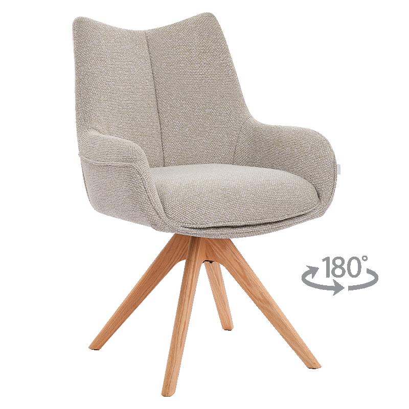Трапезният стол Montero съчетава иновативни функции с елегантен дизайн, за да предложи превъзходно ниво на комфорт във Вашата трапезария. Моделът се отличава с мека седалка, в която са вградени покет пружини за оптимална опора, тапицирана с качествена дамаска в цвят крем. Стабилната основа от дърво разполага с механизъм за въртене на 180° и автоматично връщане в първоначална позиция, което осигурява голяма свобода на движение. Със своята здрава конструкция и ергономична форма, столът гарантира издръжливост при натоварване до 120 кг. Пълна информация за размерите и характеристиките на модела ще намерите в таб/поле "Техническа информация".