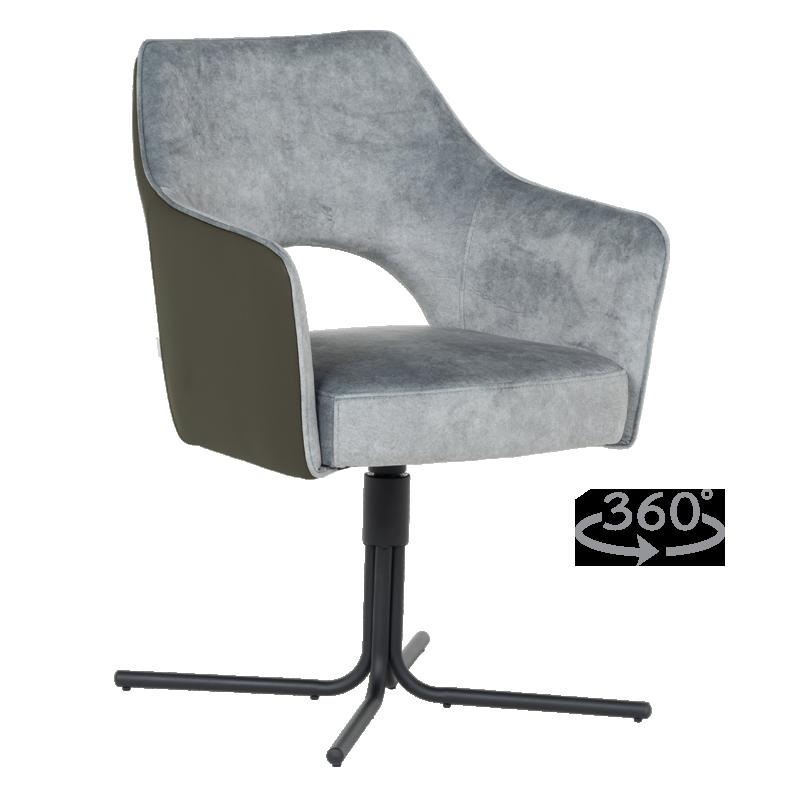 Трапезният стол PARNU съчетава елегантен модерен дизайн с отлична функционалност. Меката седалка е тапицирана с висококачествена дамаска и разполага с покет пружини за допълнителен комфорт, а извитите подлакътници допринасят за усещането за уют и подкрепа. Столът е снабден с механизъм за плавно завъртане на 360°, което улеснява движението и комуникацията около масата. Металната кръстата основа осигурява стабилност и издръжливост до 120 кг. PARNU е стилно решение за всяка съвременна трапезария, комбиниращо комфорт, практичност и изчистена визия. Пълна информация за размерите и характеристиките на модела ще намерите в таблицата в таб/поле 'Техническа информация'