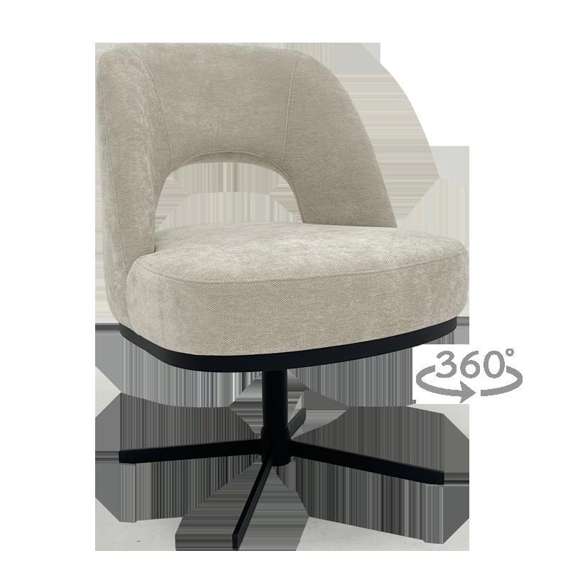 Трапезен стол POLVA впечатлява с модерна визия и изключителен комфорт, съчетавайки мека дамаска и стабилна основа от прахово боядисан метал в класически черен цвят. Седалката е оборудвана с покет пружини, които осигуряват по-еластично и удобно усещане при седене. Благодарение на механизма за 360° въртене, автоматично връщане в изходна позиция и люлееща функция, моделът предлага динамично и приятно изживяване, подходящо за продължителни разговори или работни срещи около масата. Пълна информация за размерите и характеристиките на модела ще намерите в таблицата в таб/поле „Техническа информация“