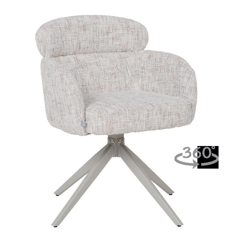 Трапезен стол TORNO съчетава модерна визия и изключителен комфорт, превръщайки всяко сядане в приятно изживяване. Меката дамаска и седалката с покет пружини осигуряват отлична опора и удобство, а функцията за въртене на 360° добавя допълнителна практичност в ежедневието. Стабилната основа от праховобоядисан метал в елегантен цвят шампанско допълва изчистения дизайн и гарантира надеждност при употреба. Пълна информация за размерите и характеристиките на модела ще намерите в таблицата в таб/поле "Техническа информация".