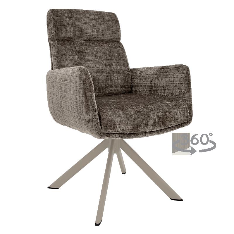 Трапезен стол TORVA е олицетворение на модерния комфорт, предлагайки елегантен дизайн с удобни подлакътници и мека тапицерия от издръжлива дамаска. За максимално удобство при продължително седене, седалката е подсилена със система от покет пружини и разполага с функция за люлеене. Здравата основа от праховобоядисан метал позволява пълно въртене на 360° и включва механизъм за автоматично връщане в изходна позиция. Този стол е създаден да издържи на натоварване до 120 кг, което го прави отличен и стабилен избор за всяка съвременна трапезария. Пълна информация за размерите и характеристиките на модела ще намерите в таблицата в таб/поле "Техническа информация"