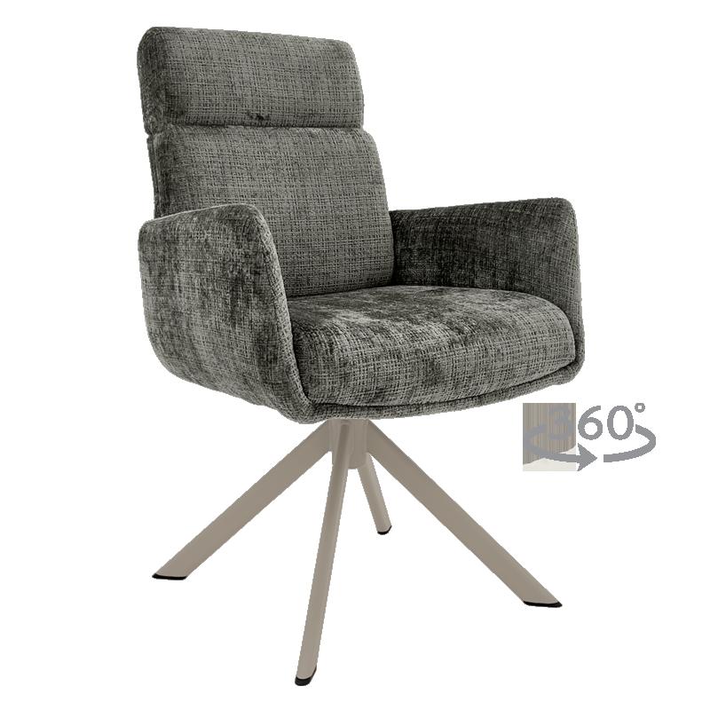 Трапезен стол TORVA е олицетворение на модерния комфорт, предлагайки елегантен дизайн с удобни подлакътници и мека тапицерия от издръжлива дамаска. За максимално удобство при продължително седене, седалката е подсилена със система от покет пружини и разполага с функция за люлеене. Здравата основа от праховобоядисан метал позволява пълно въртене на 360° и включва механизъм за автоматично връщане в изходна позиция. Този стол е създаден да издържи на натоварване до 120 кг, което го прави отличен и стабилен избор за всяка съвременна трапезария. Пълна информация за размерите и характеристиките на модела ще намерите в таблицата в таб/поле "Техническа информация"