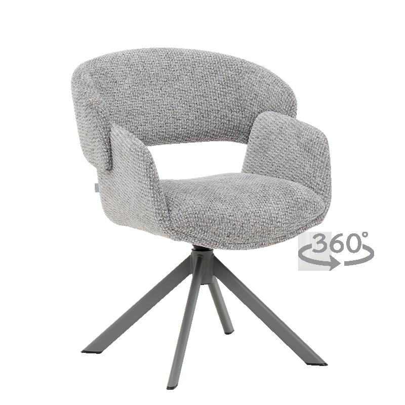 Трапезен стол VORU 8 - срещата на модерния дизайн и пълната свобода на движение. Модел, който внася динамика и уют във всяка трапезария. Неговият елегантен силует е облечен във висококачествена дамаска, а стабилната му основа от праховобоядисан метал подчертава съвременния му характер. Това, което прави VORU 8 наистина специален, е идеалната комбинация от елементи: вградените покет пружини в седалката осигуряват мека и дълготрайна опора, а столът допълнително предлага 360° въртене, лека люлееща функция и автоматично връщане в перфектната изходна позиция. Всичко това превръща всяко хранене или разговор в релаксиращо преживяване. VORU 8 е създаден да бъде не просто мебел, а централен елемент на комфорта във вашия дом. Пълна информация за размерите и характеристиките на модела ще намерите в таблицата в таб/поле "Техническа информация"