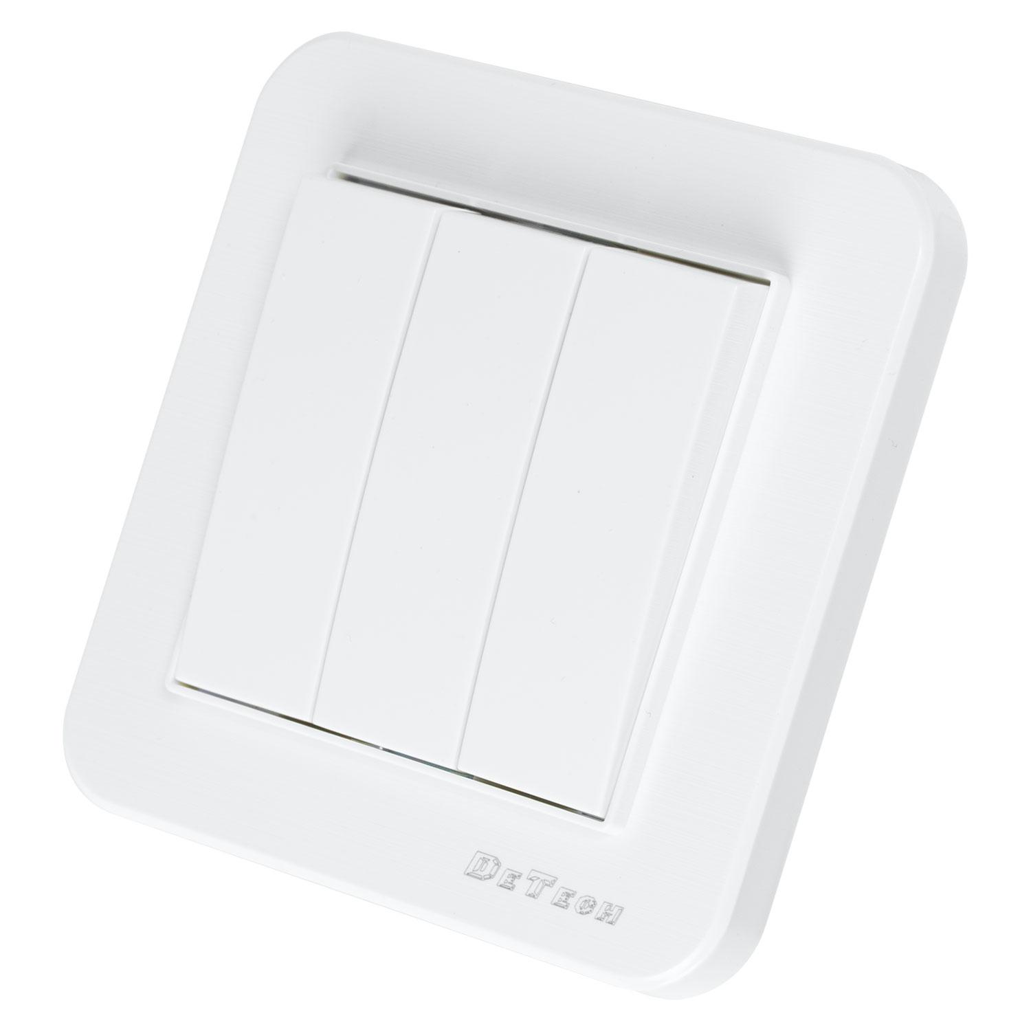 Троен ключ за осветление DeTech DE-9223-03 (схема 1) с класически квадратен дизайн и декоративна рамка, в бял цвят.