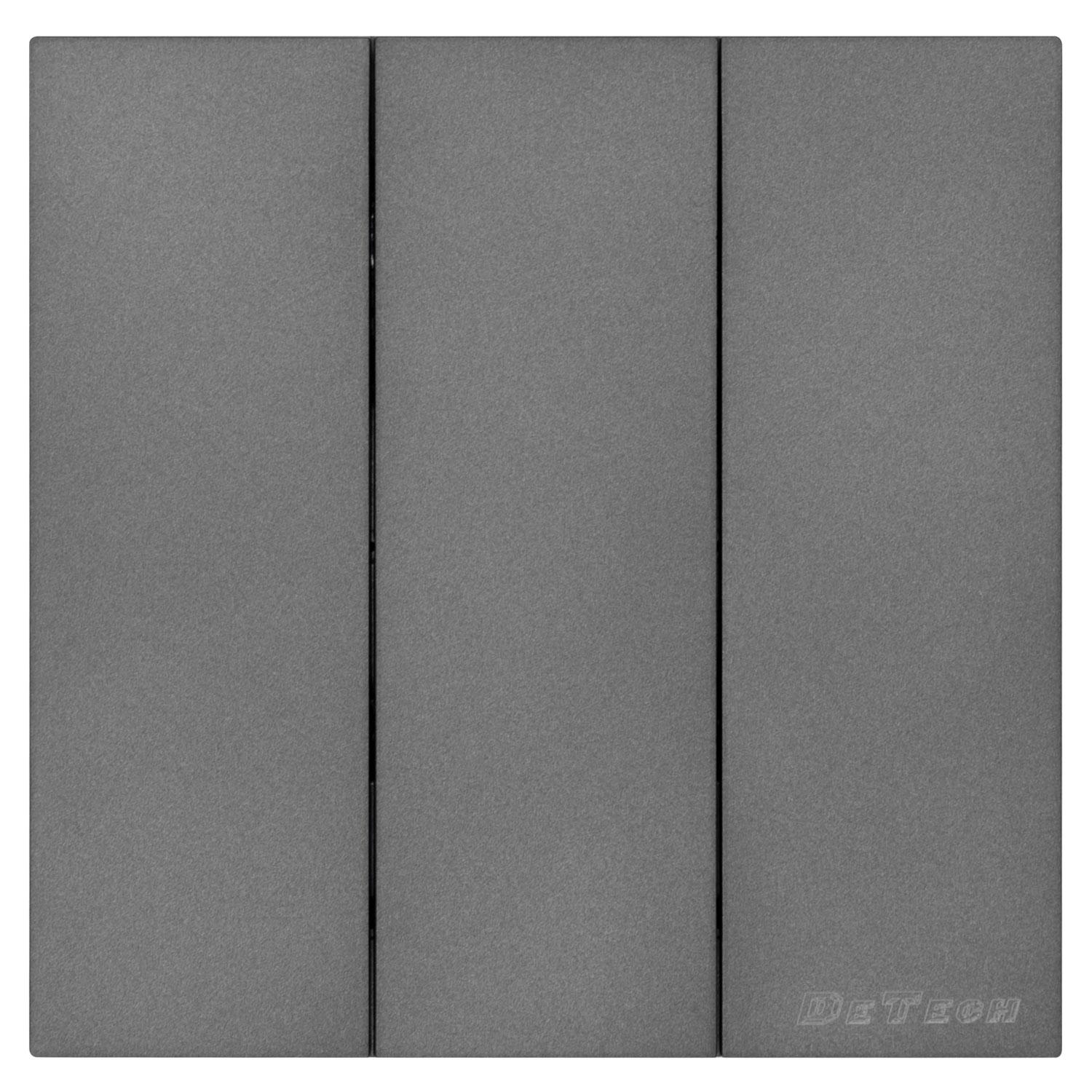 Троен ключ за осветление DeTech DE-9225-03 (схема 1) с класическа квадратна форма, в сив цвят.