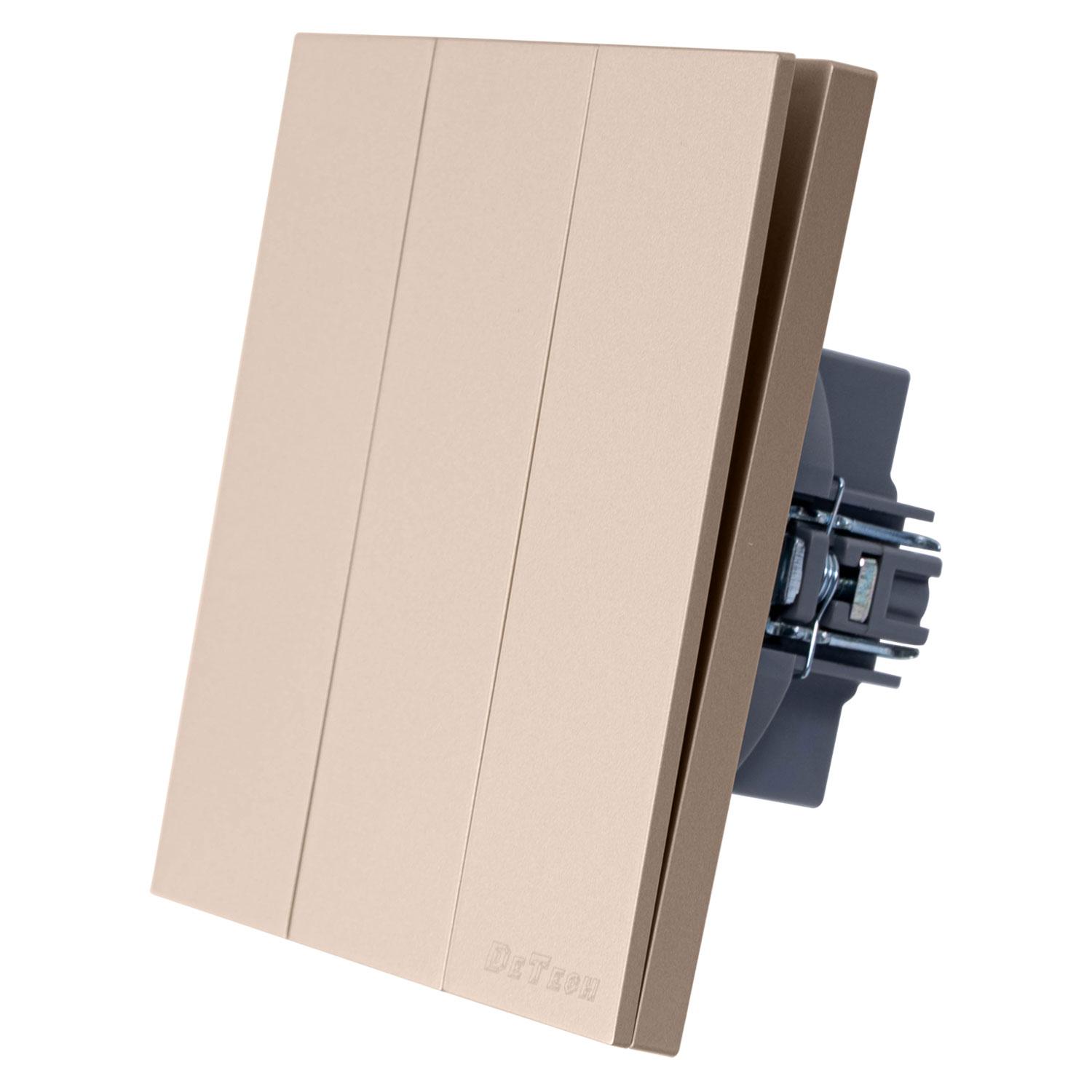 Троен ключ за осветление DeTech DE-9225-03 (схема 1) с класическа квадратна форма, в златист цвят.