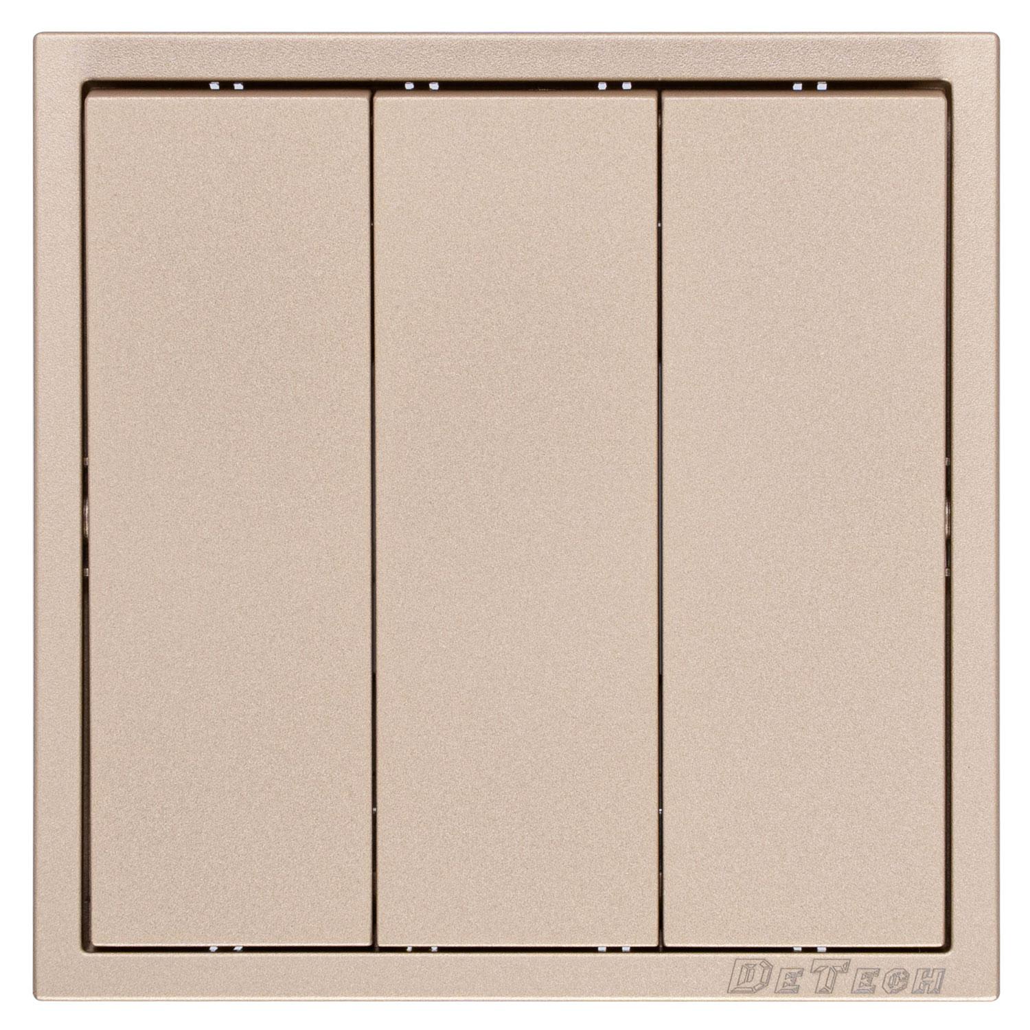 Троен ключ за осветление DeTech DE-9227-03 (схема 1) с класически квадратен дизайн, декоративна рамка и висококачествено матово покритие.