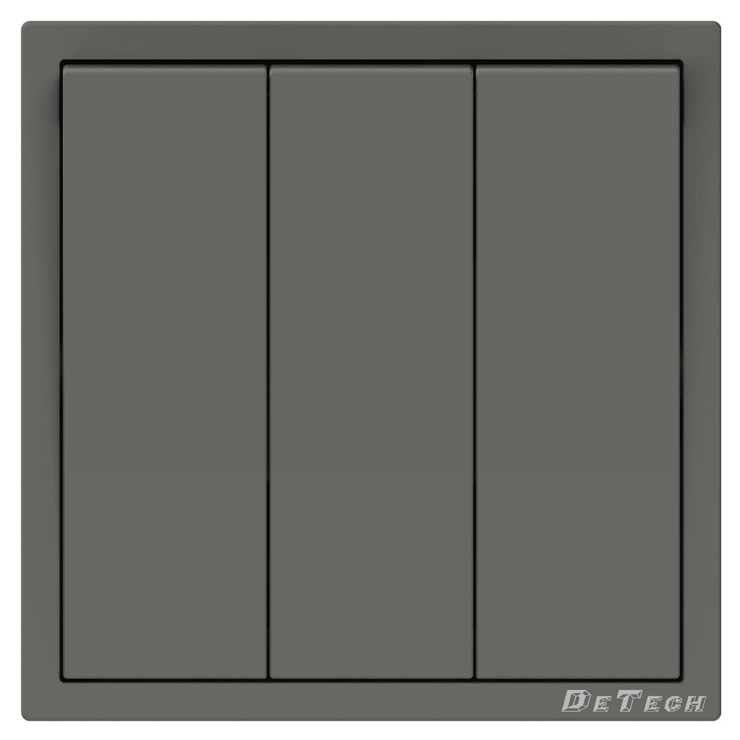 Троен ключ за осветление DeTech DE-9227-03 (схема 1) с класически квадратен дизайн, декоративна рамка и висококачествено матово покритие.