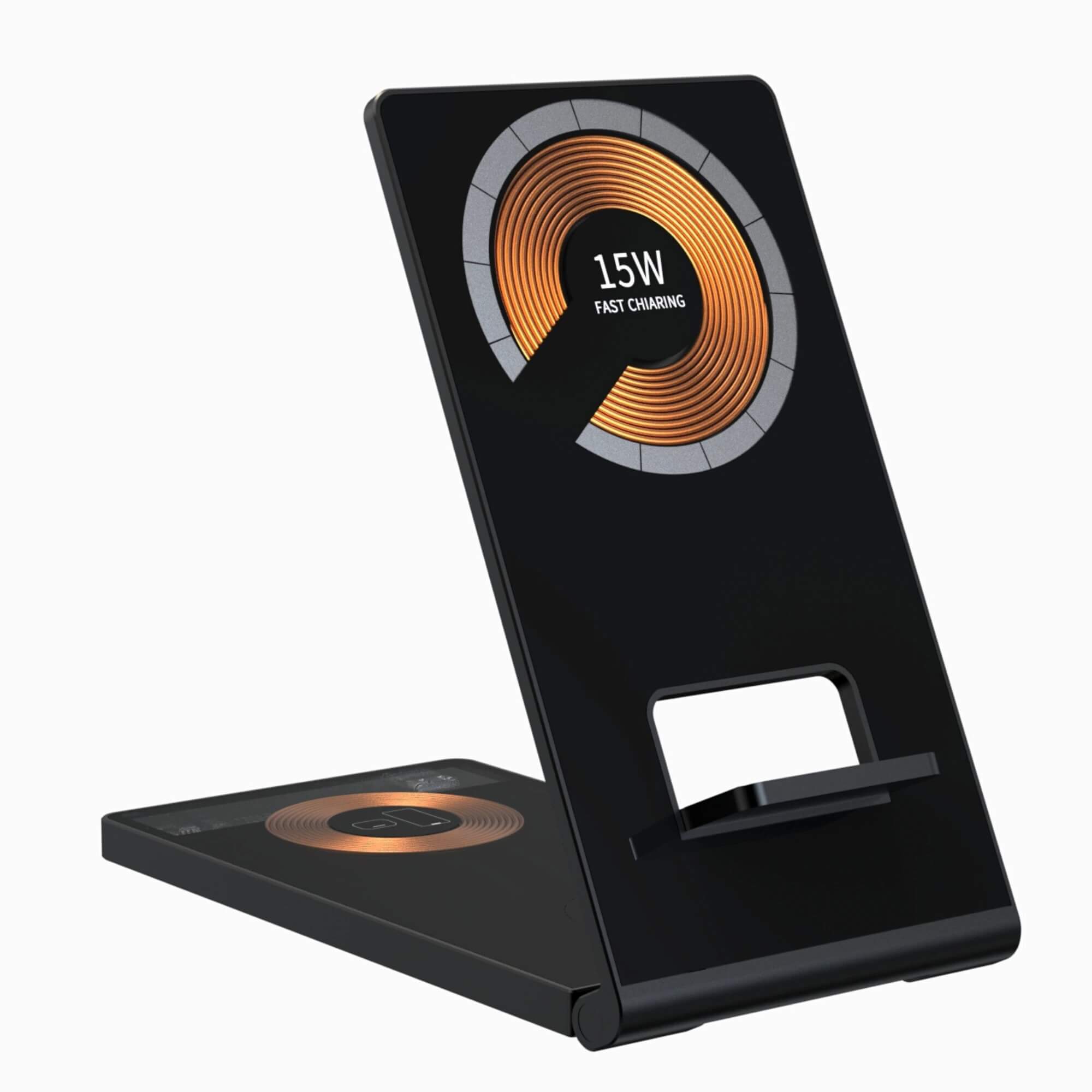 Тройна поставка (пад) за безжично зареждане за iPhone с Magsafe, Apple Watch, AirPods Pro и Qi съвместими мобилни устройства - JC 4-in-1 Travel Charger with MagSafe (черен)