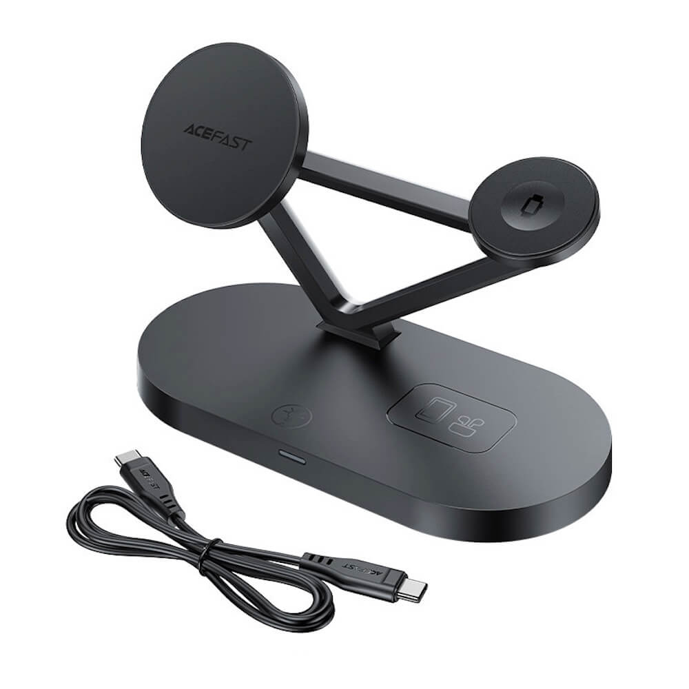 Тройна поставка (пад) за безжично зареждане за iPhone с Magsafe, Apple Watch и AirPods Pro - Acefast 3-in-1 Magnetic MagSafe Wireless Charger 15W (черен)