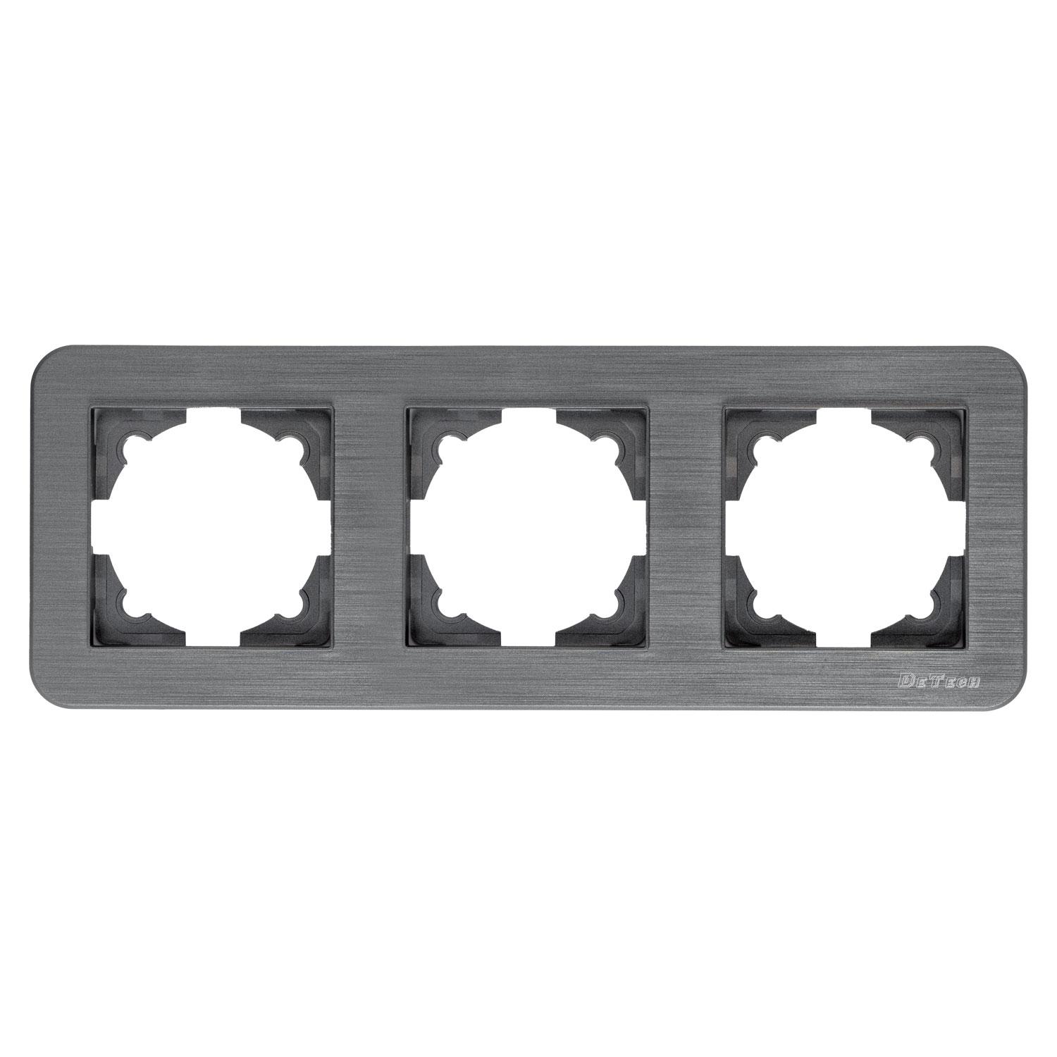 Тройна рамка DeTech DE-9223-83, Хоризонтална, За вграждане, 222x80, Сив - 75070