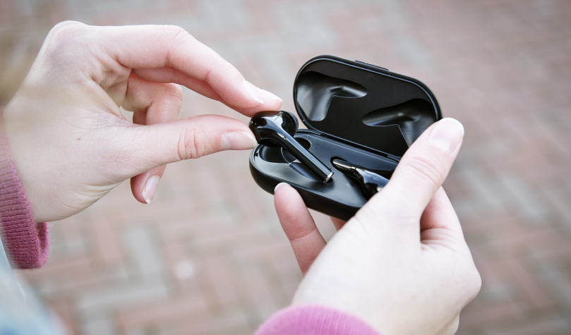Charge as you Go The earphones have a playtime of up to 6 hours on a single charge, but the music doesn’t stop there. The included case isn’t just for carrying the earphones around: it also serves as a charger on the go. Simply place the earphones inside, and they will start charging, resulting in a total playtime of up to 16 hours. |