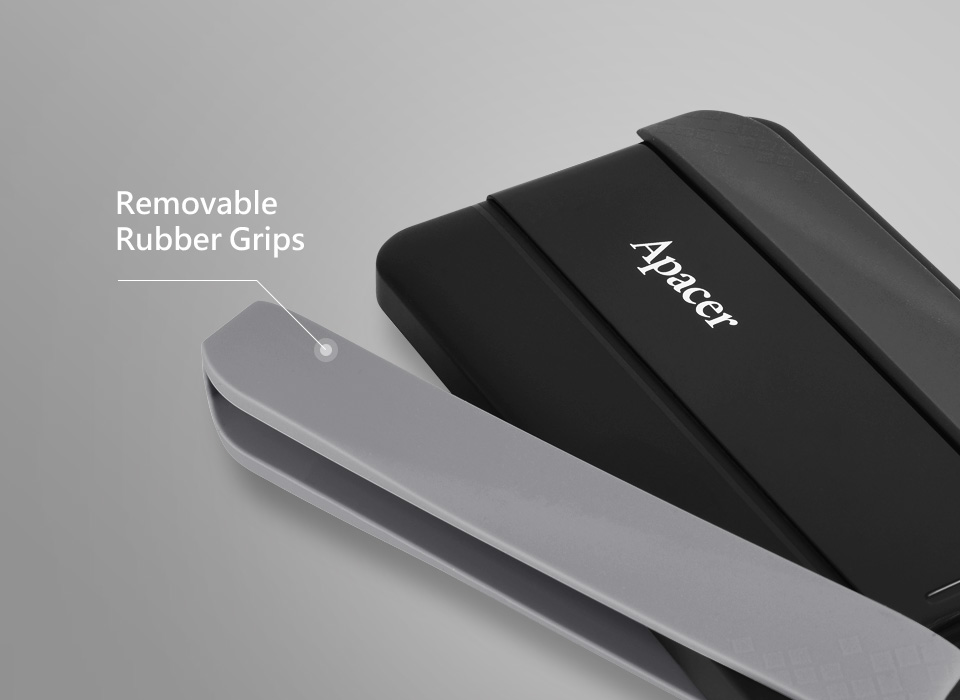Dual Rubber Grips for Greater Security The AC533's dual rubber grips provide safety protection for the exterior, slow down impact force, and reduce the risk of hard disk damage, allowing users to feel secure while carrying their drive in the real world. |