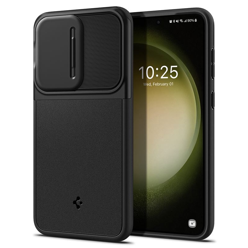 Тънък качествен силиконов (TPU) калъф с капак за камерата за Samsung Galaxy S23 - Spigen Optik Armor Case (черен)