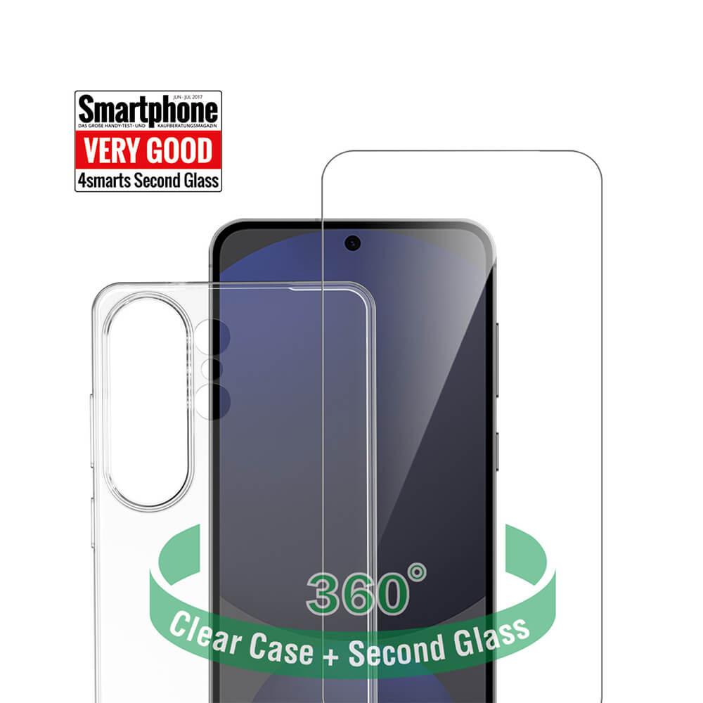 Тънък силиконов кейс и стъклено защитно покритие за дисплея на Samsung Galaxy S26 Ultra - 4smarts 360° Protection Set (прозрачен)