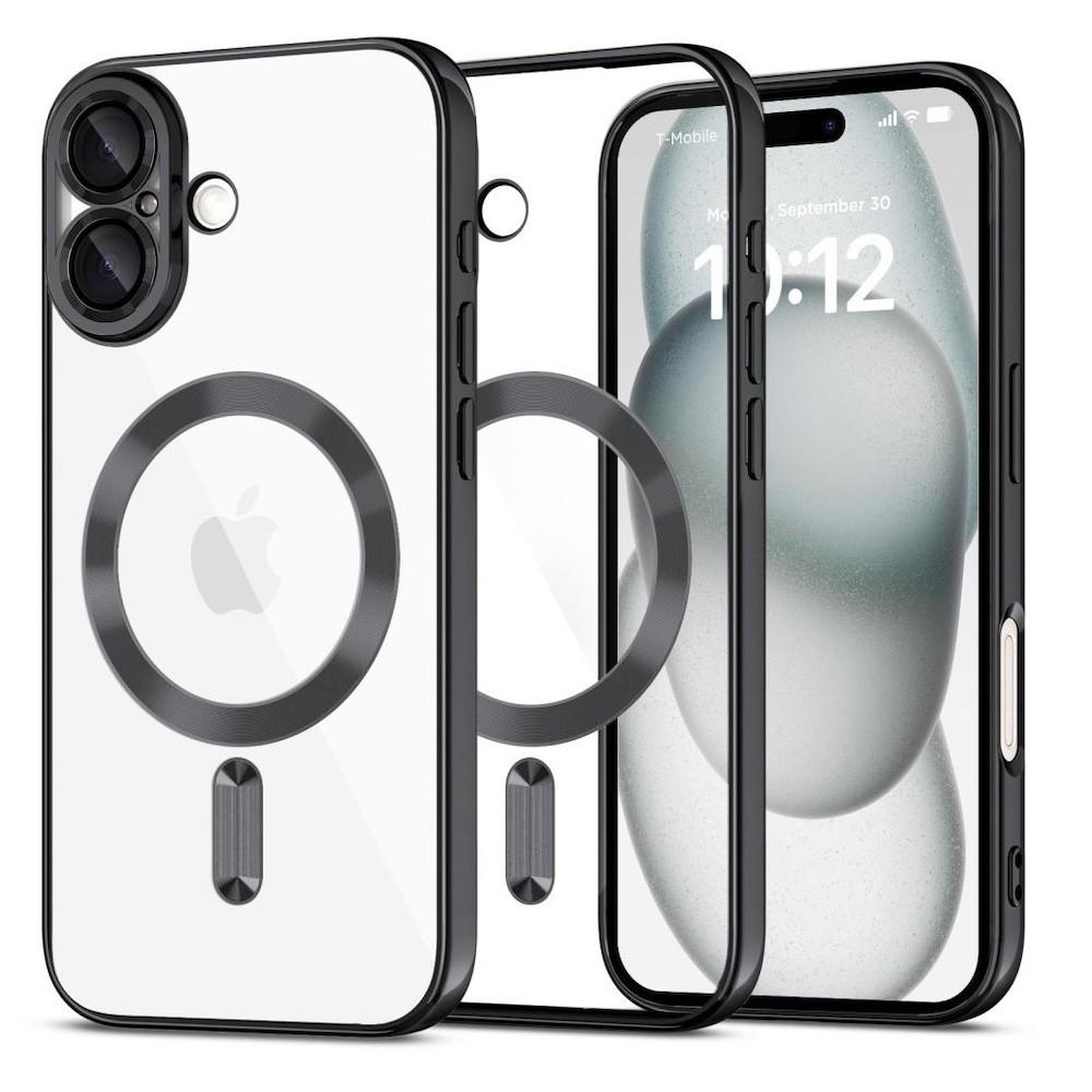Тънък силиконов (TPU) калъф с MagSafe за iPhone 16 Plus - Techsuit Luxury Crystal MagSafe Case (черен-прозрачен)