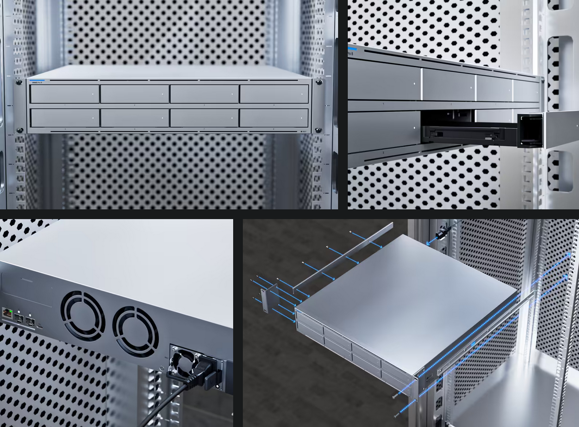 2U rack-mount NAS with (8) 2.5/3.5" HDD bays and (2) M.2 NVMe SSD cache slots, delivering faster access, lower latency, and high-availability 10 Gbps networking for large-scale file storage and sharing.