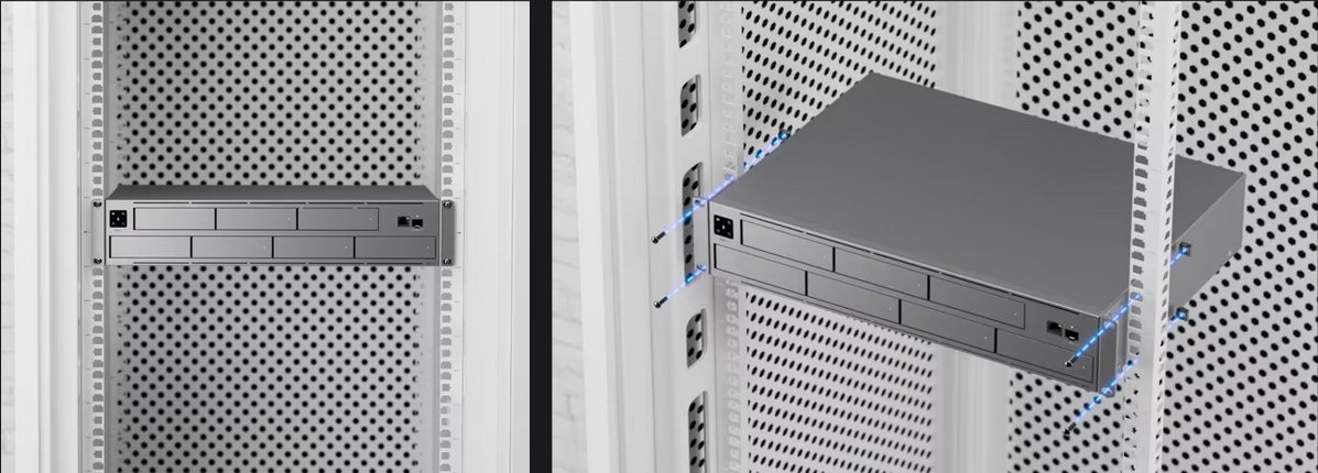A 2U-sized video recorder with (7) 2.5/3.5" HDD bays that can provide up to 60 days of storage for (24) 4K cameras or (70) Full HD cameras.