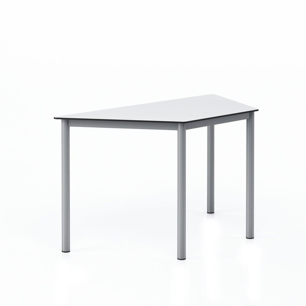 Ученическа маса RFG Trapez, над VIII клас, 1250 х 600 х 750 mm, модулна, трапецовидна, HPL, бял плот със заоблени ъгли, сиви метални крака