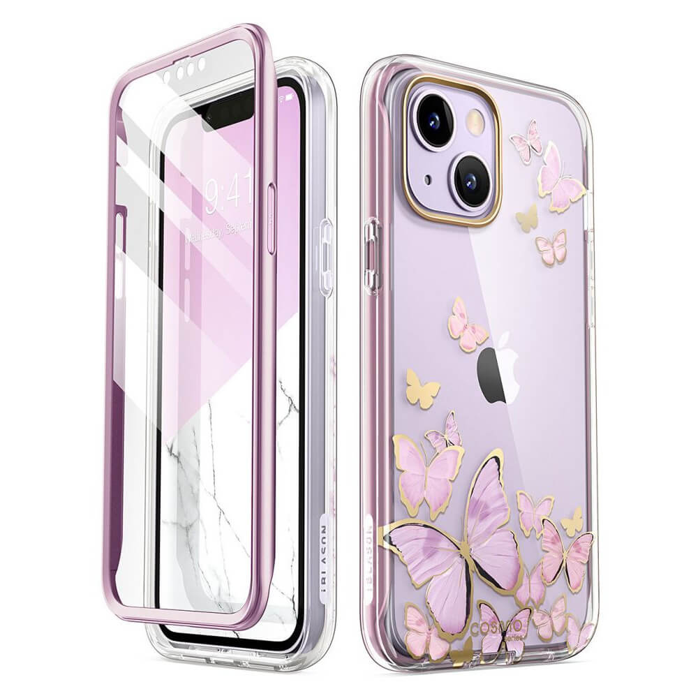 Удароустойчив хибриден кейс с вграден протектор за дисплея за iPhone 14 Plus - i-Blason Cosmo SupCase Protective Case (лилав-прозрачен)