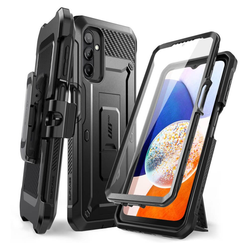 Удароустойчив хибриден кейс с вграден протектор за дисплея за Samsung Galaxy A14 4G, Galaxy A14 5G - i-Blason SUPCASE Unicorn Beetle Pro Case with Screen Protector (черен)