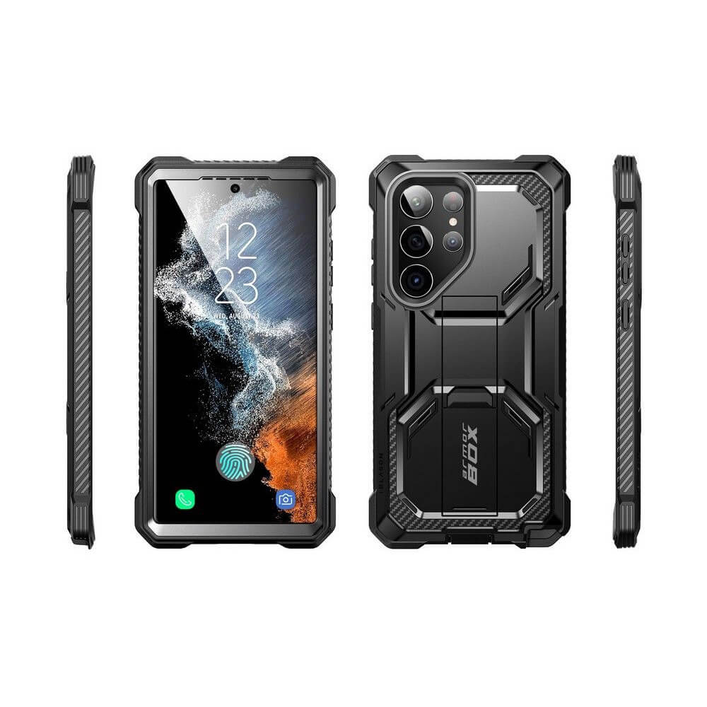 Удароустойчив хибриден кейс с вграден протектор за дисплея за Samsung Galaxy S23 Ultra - i-Blason SUPCASE ArmorBox Case (черен)