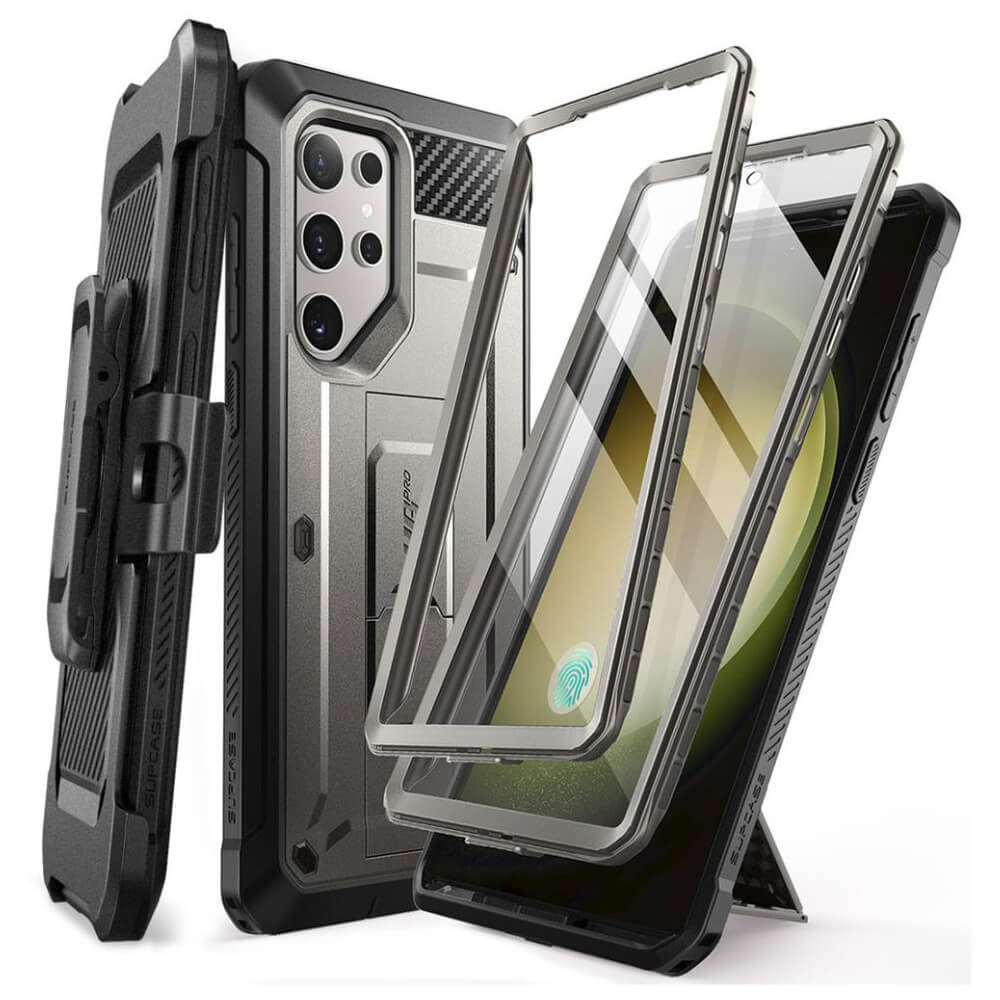 Удароустойчив хибриден кейс с вграден протектор за дисплея за Samsung Galaxy S24 Ultra - i-Blason SUPCASE Unicorn Beetle Pro Case with Screen Protector (сив)