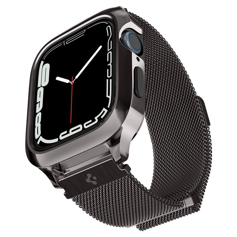 Удароустойчив хибриден кейс със стоманена каишка за Apple Watch 8 45мм, Apple Watch 7 45мм (тъмносив)  - Spigen Metal Fit Pro