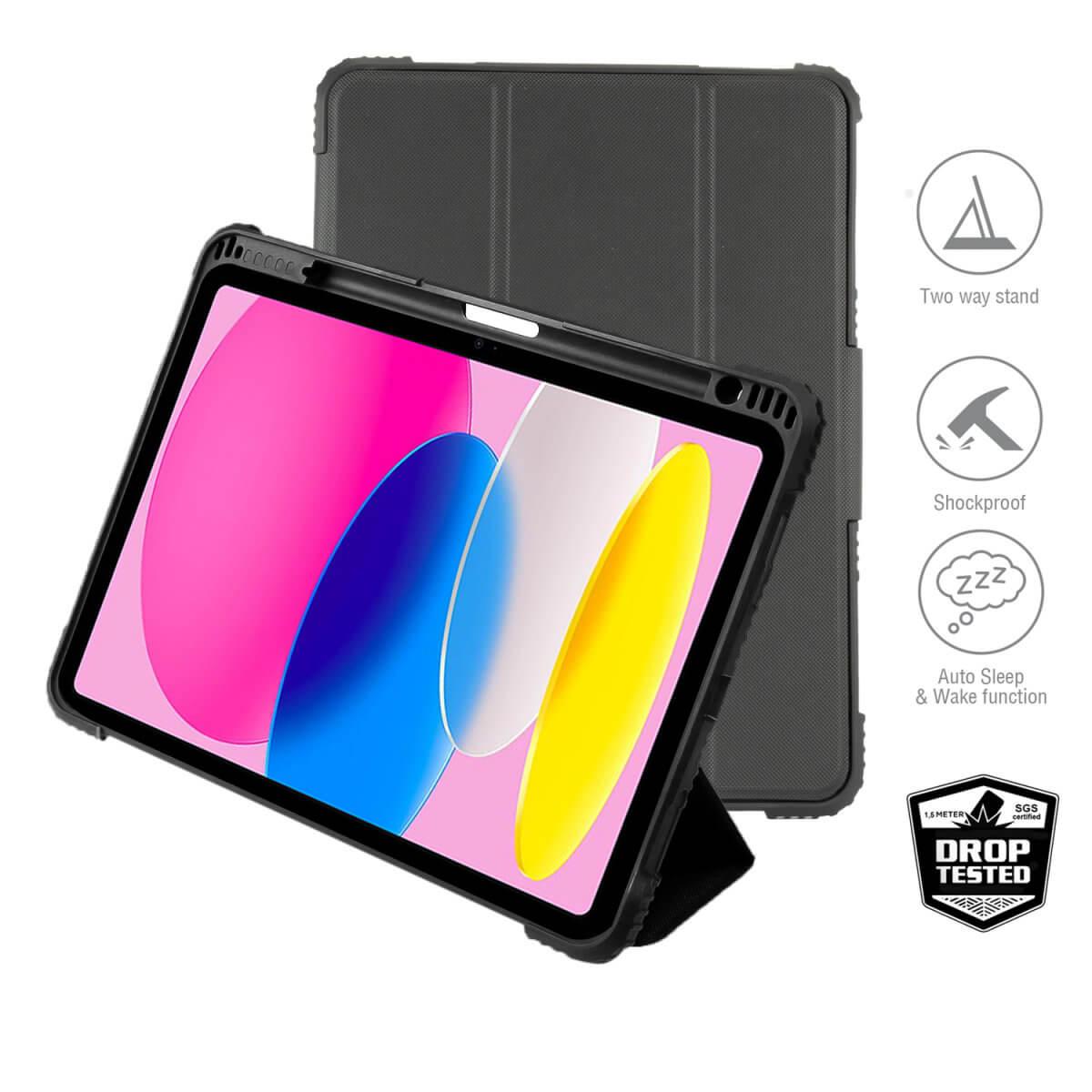 Удароустойчив хибриден кейс за iPad 10 (2022), iPad 11 (2025) - 4smarts Endurance Folio Protective Case (черен)