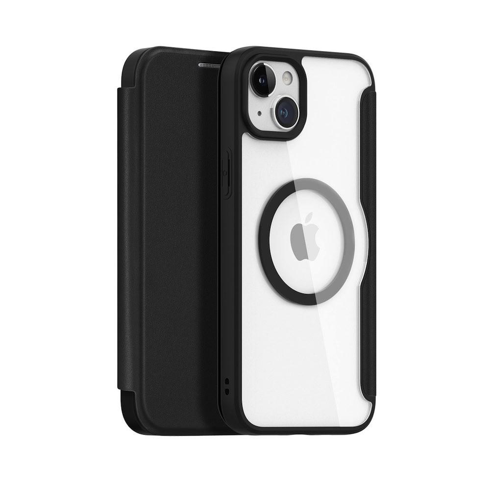 Удароустойчив хибриден кожен кейс с отделение за карти и MagSafe за iPhone 15 - Dux Ducis Skin X Pro Magnetic Wallet Case (черен-прозрачен)
