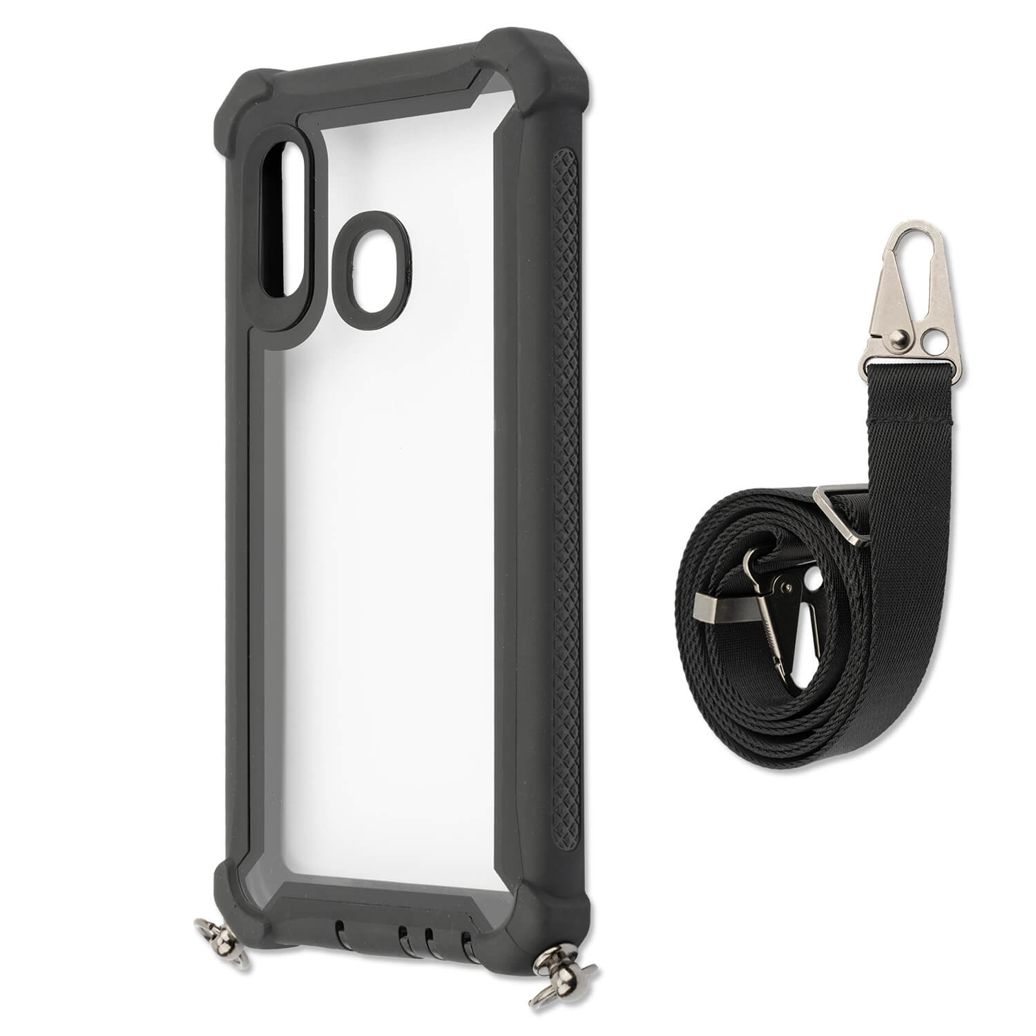 Два изключително здрави карабина, позволяващи на смартфона да се задържа сигурно към лентата и могат бързо да се прикрепят или свалят при необходимост