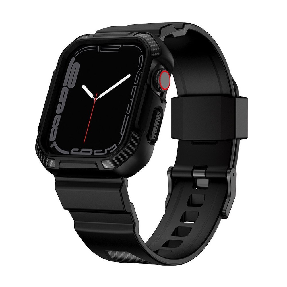 Удароустойчив TPU кейс с вградена каишка за Apple Watch 44мм, 45мм - Kingxbar 2in1 Watch Strap and Case CYF537 (черен)