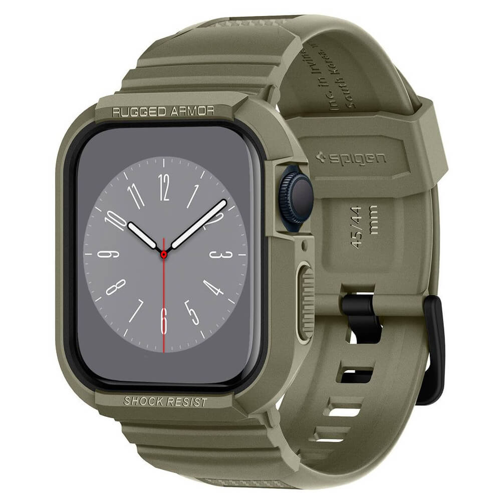 Удароустойчив TPU кейс с вградена каишка за Apple Watch 44мм, 45мм - Spigen Rugged Armor Case Pro (зелен)